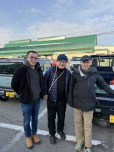 10日、早朝の弘前の市場にて、父と中村さんとスリーッショット。